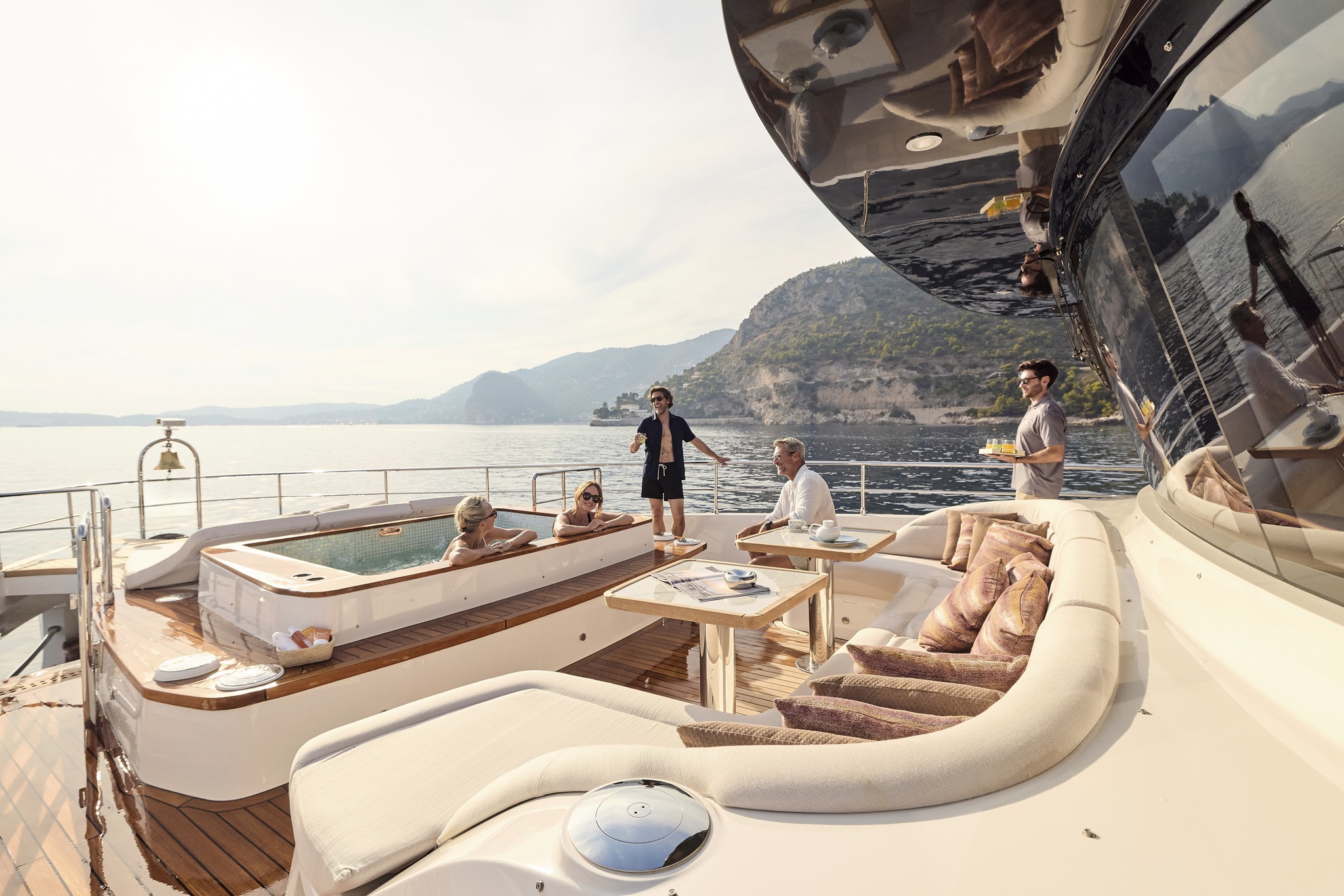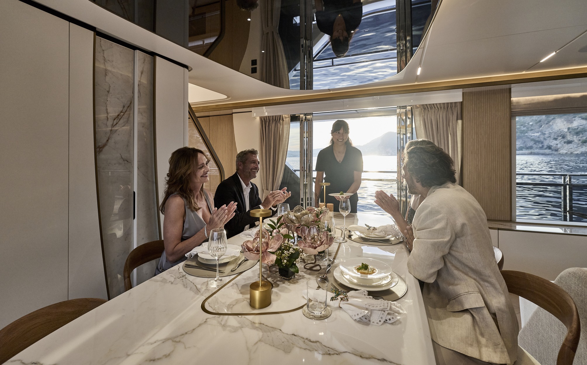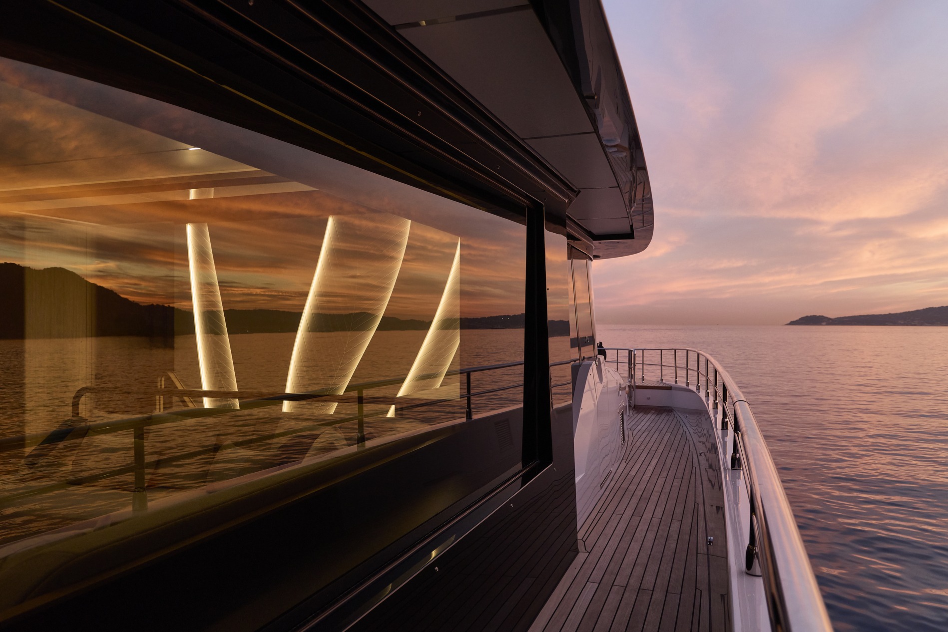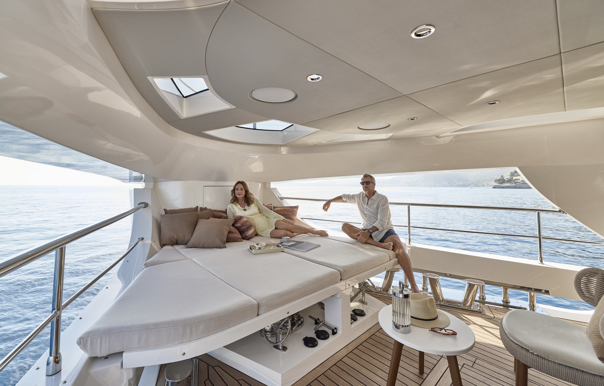 Engineered for optimal performance, it blends fuel efficiency with raw power for smooth cruising, whether in the Mediterranean or Caribbean. With a 20% increase in entertainment space, every deck is designed for social gatherings, while the interiors masterfully balance form and function for unparalleled comfort. Bathed in natural light through expansive glass skylights, the yacht’s wide, open spaces create a seamless indoor-outdoor connection, enhancing its airy, open feel.