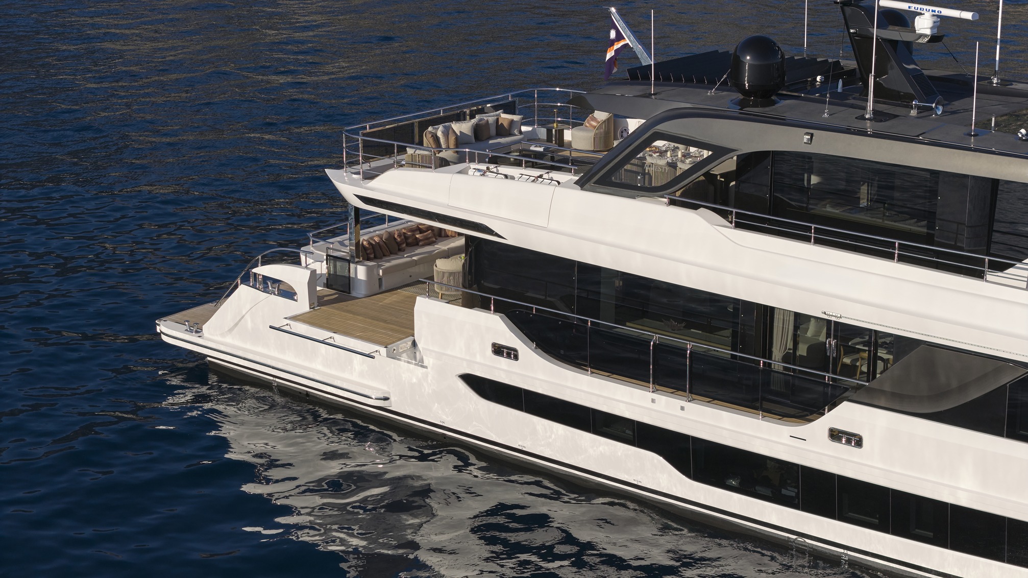 The Majesty 100 Terrace is a masterpiece of modern design and craftsmanship, building on its legacy as one of the most celebrated models in Majesty Yachts’ history.