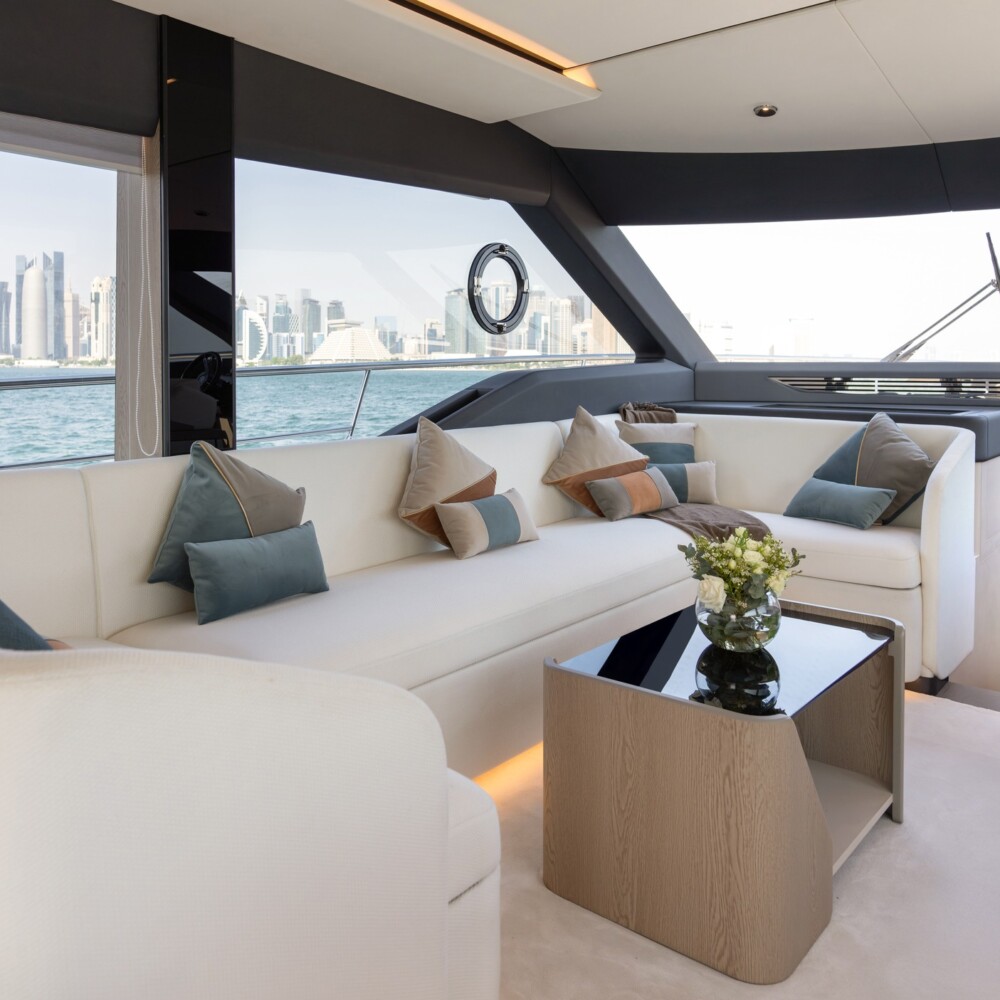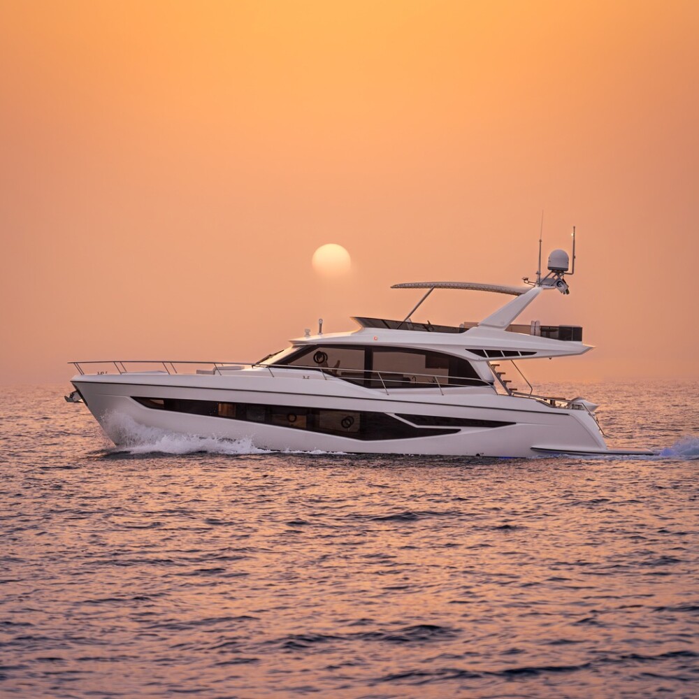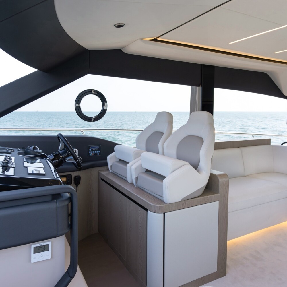 Step aboard the Majesty 60 for a seamless blend of elegance and performance. Its sleek design, expansive swim platform, and sun-drenched spaces create the ultimate backdrop for relaxation, while a well-appointed interior ensures comfort and style on every journey.