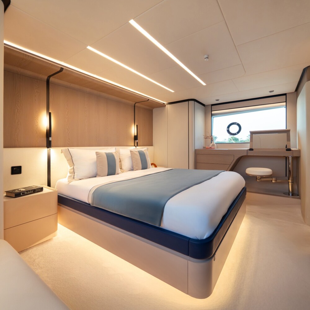 With 2 or 3 cabin layouts, private bathrooms, and customizable features, the Majesty 60 defines your yachting dream with unparalleled style and comfort.