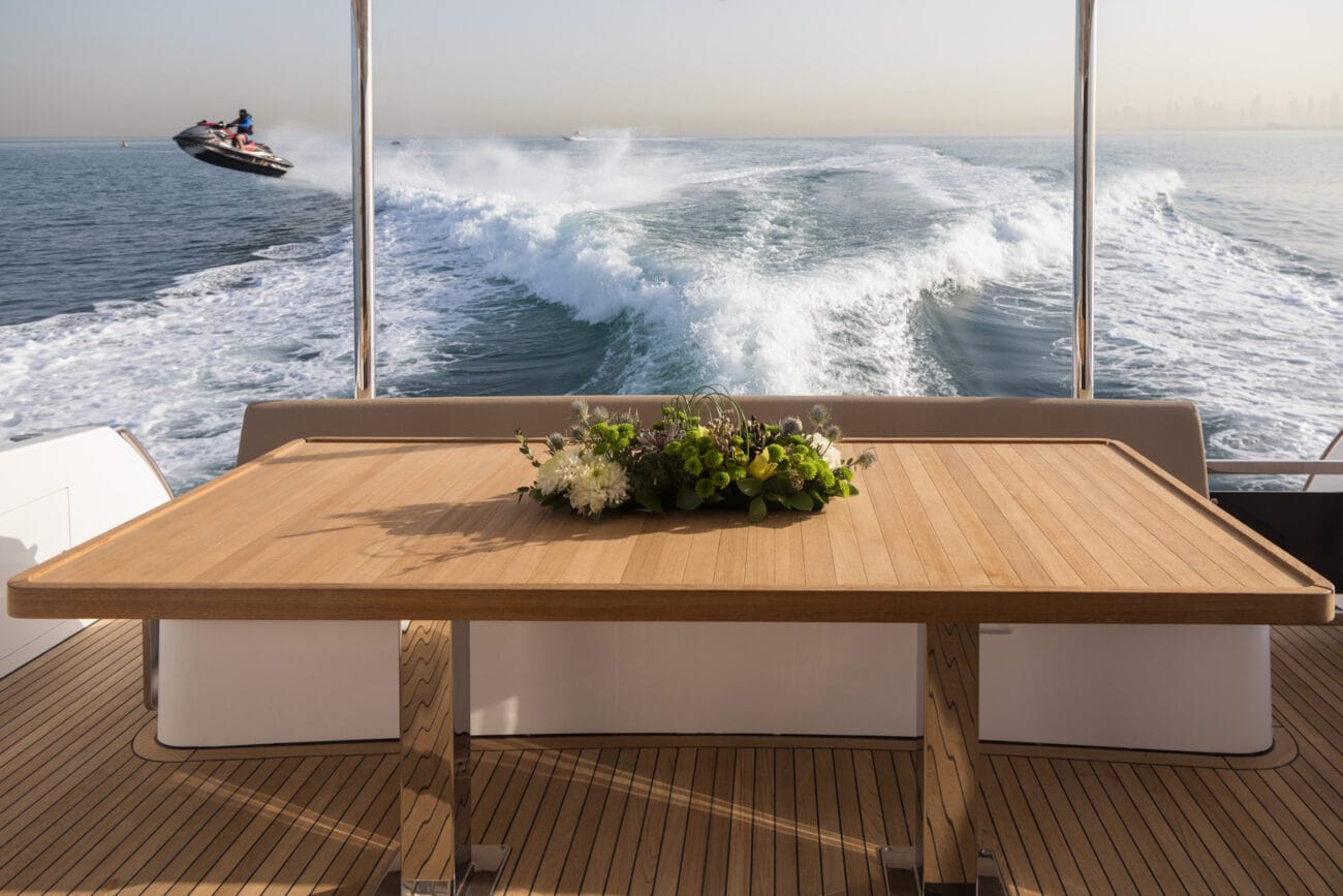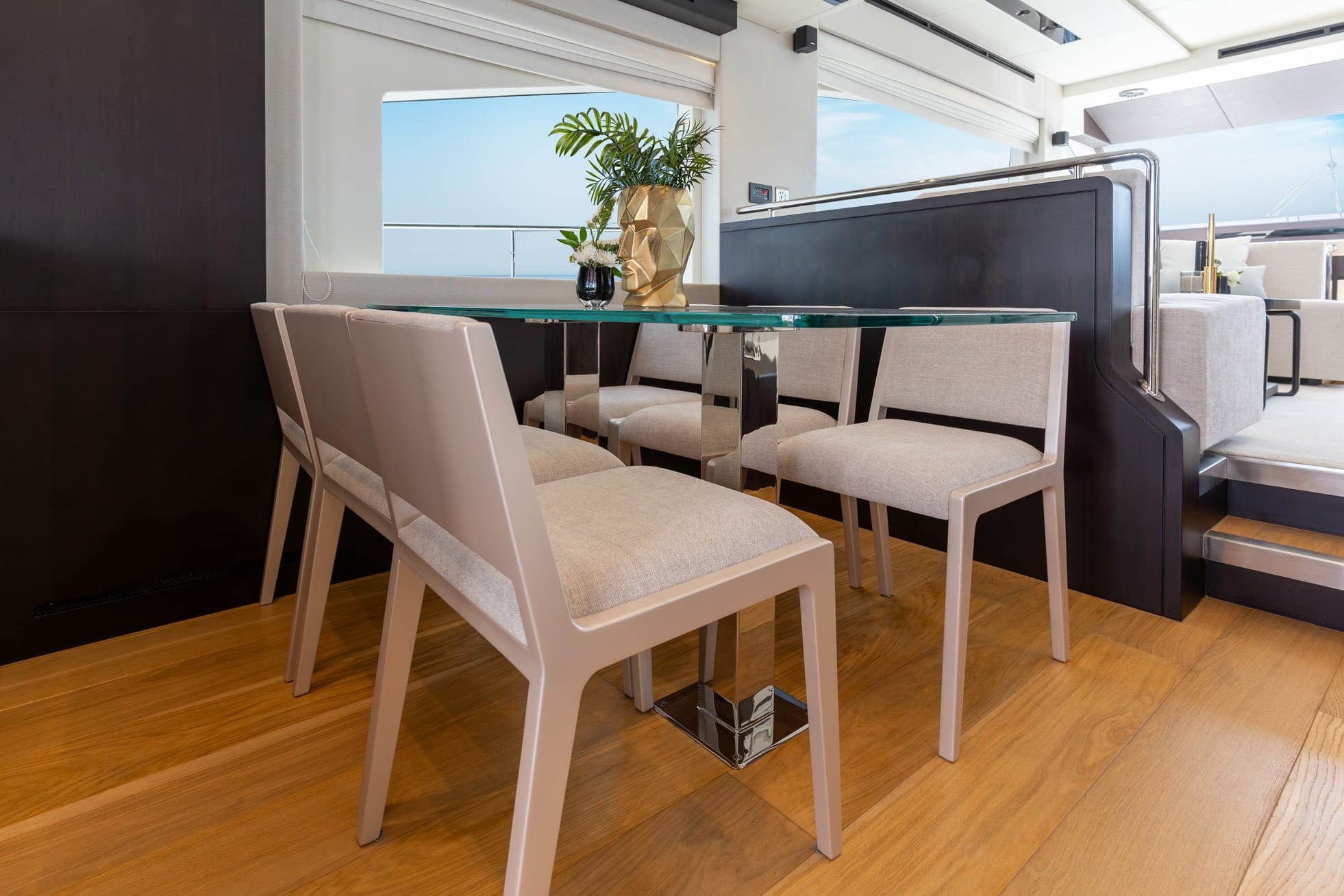 Its spacious flybridge offers a commanding view of the surroundings, while the open-plan main deck seamlessly blends indoor and outdoor living. Whether cruising along the coastline or anchoring at a secluded bay, this yacht provides the perfect setting for relaxation and entertainment.