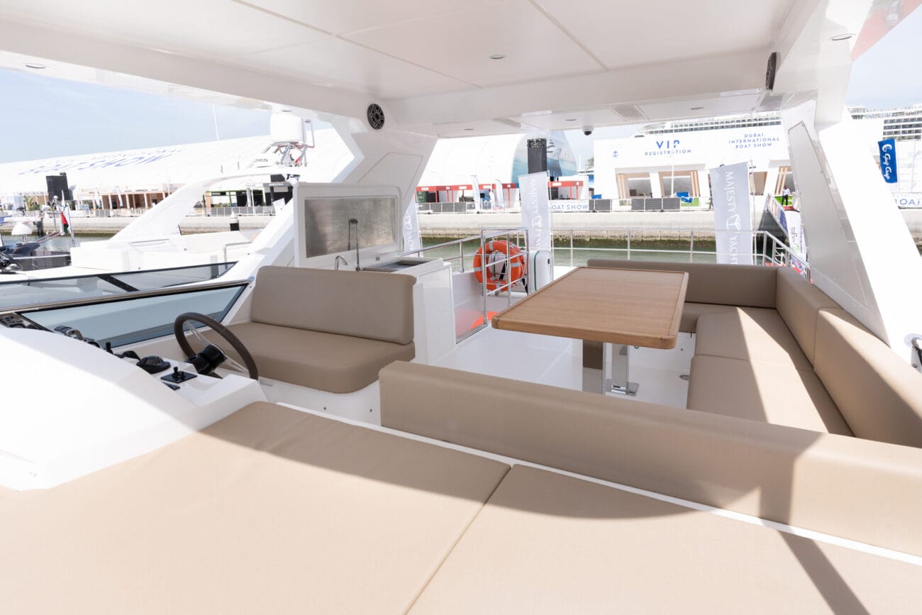 Powered by efficient propulsion and equipped with a 1,003-gallon fuel capacity, the Majesty 62 is built for both short island-hopping getaways and longer voyages. From its elegantly designed saloon to its expansive aft deck and sun-drenched flybridge, every element of this yacht is designed to enhance the onboard experience. A true standout in its class, the Majesty 62 embodies the perfect blend of performance, space, and craftsmanship.