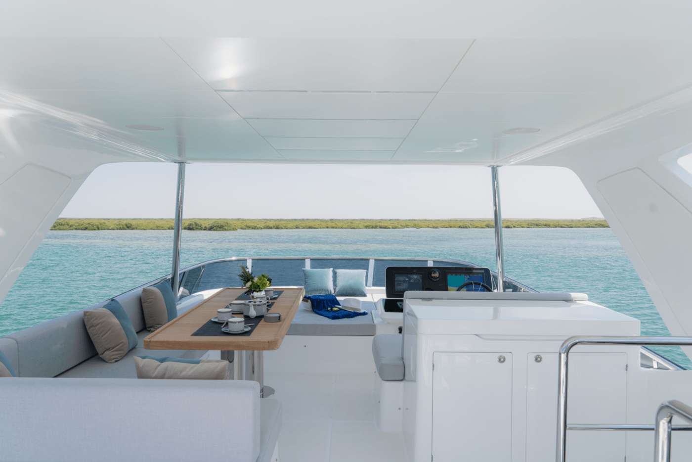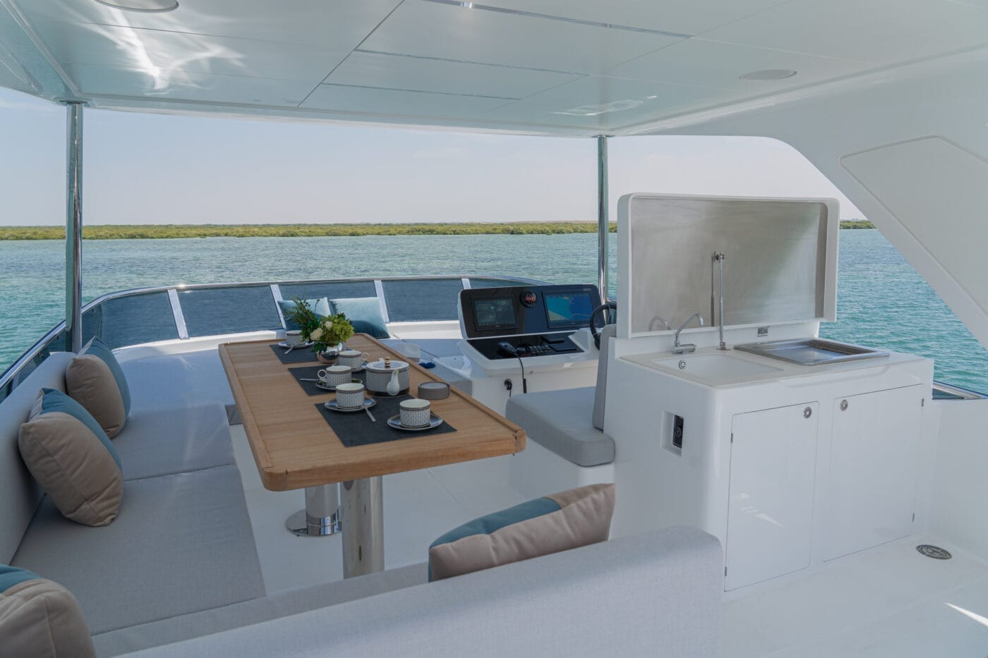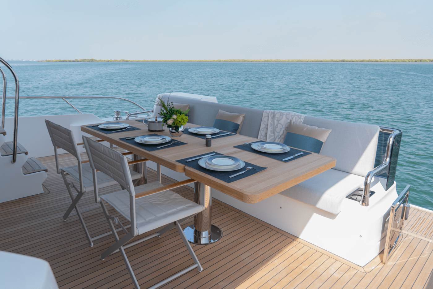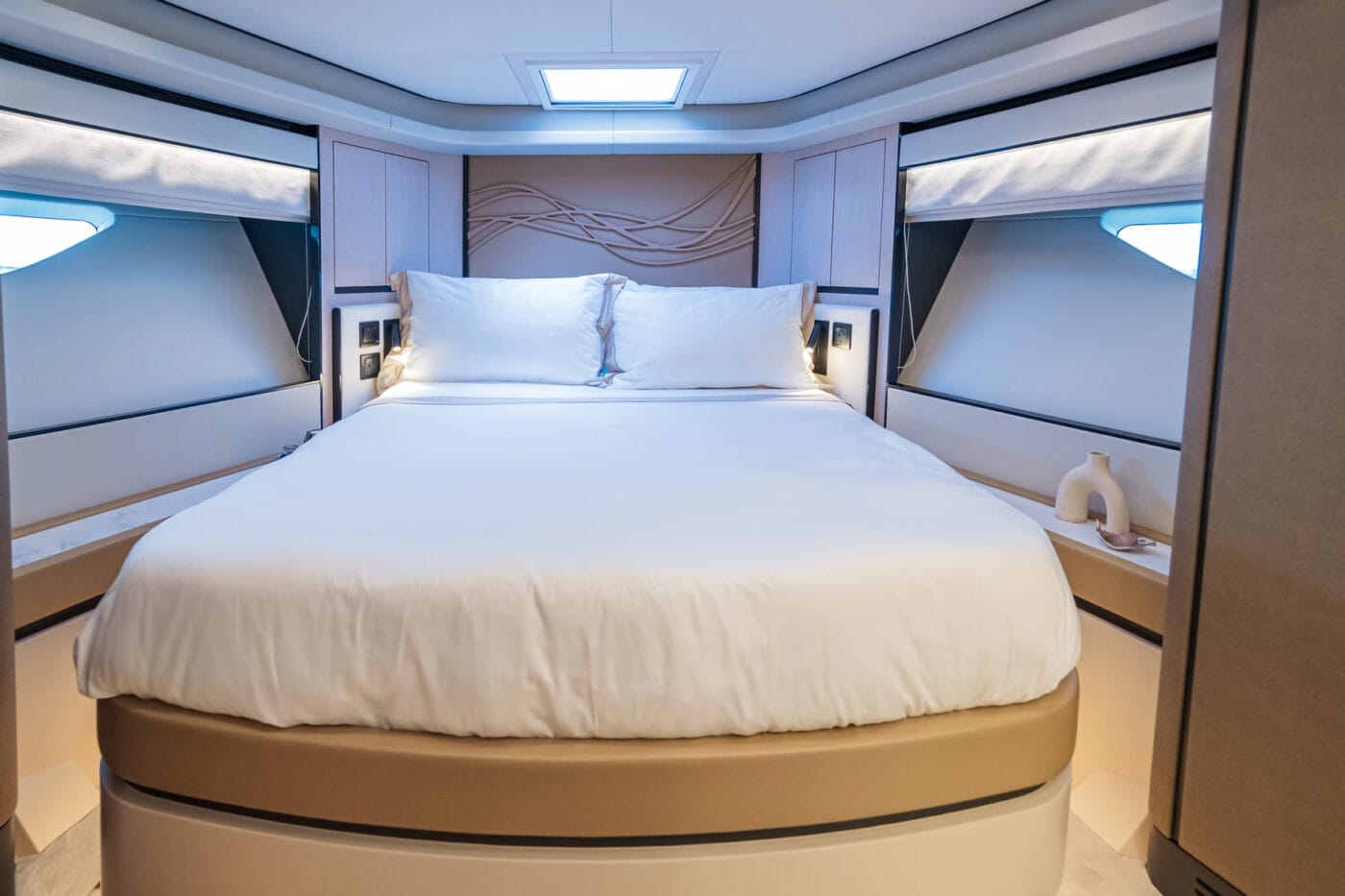 Expansive windows flood the interior with natural light, while premium materials and meticulous craftsmanship create a modern, sophisticated ambiance. The yacht’s thoughtfully designed decks provide multiple areas for relaxation, from alfresco dining areas to sun-drenched lounging on the spacious flybridge.
